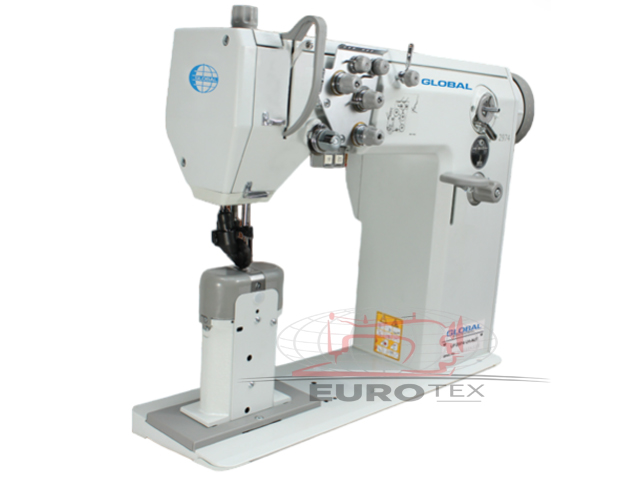 2-igleni stubni šivaći stroj s gornjim pogonskim kotačićem, transportom kotačićem i velikim grajferom.